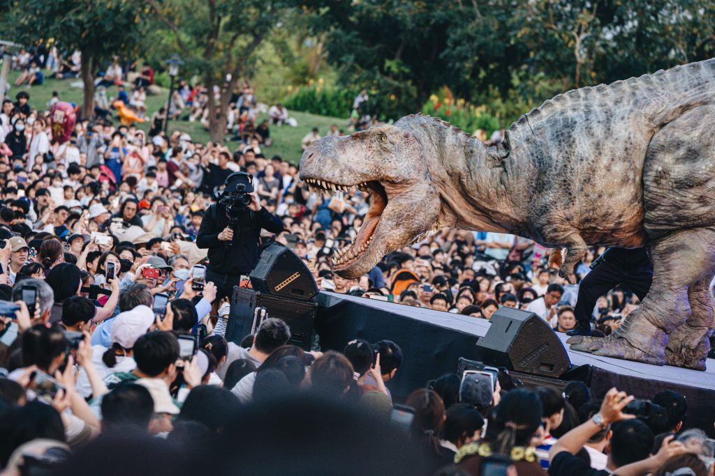 The event included a performance by Japan’s DINO-A-LIVE troupe, along with fossil excavation areas, interactive games, and photo zones. A market featuring more than 100 vendors — offering food, crafts, and family-oriented activities — operated alongside the exhibition.