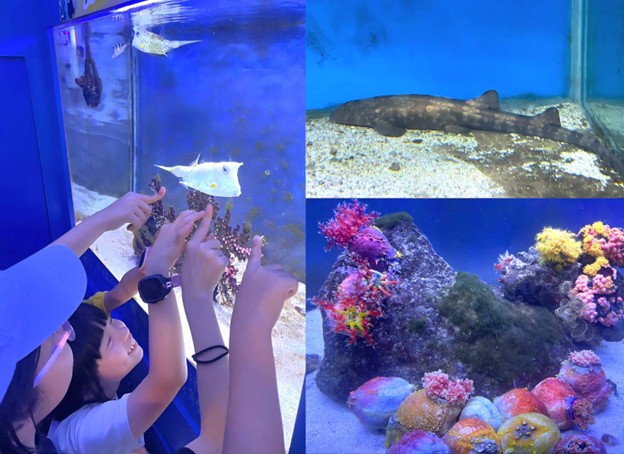 The 200-meter corridor was fitted with 29 large tanks holding more than 500 marine animals, alongside coral fossil displays. Original military signage was preserved, and the former war room became a coral fossil gallery complete with defensive firing slits. The pavilion’s eight themed zones showcased sea stars, seahorses, rays, tropical fish, sharks, and eels—including a 30-year-old giant moray considered the aquarium’s elder resident. Notable exhibits also included a thousand-year-old black coral tree and a massive clam fossil.
