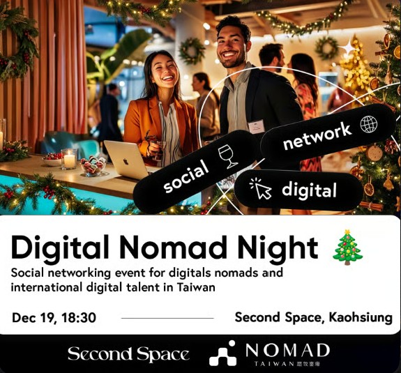 Kaohsiung’s international creative will gather on the evening of December 19, as Second Space teams up with Nomad Taiwan to host what is being billed as a cross-border mixer for remote workers, founders, designers, and other float-friendly digital talent who already call Taiwan home — or are just settling in.