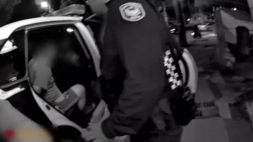 Police-released footage from the scene shows officers surrounding and subduing the suspect.