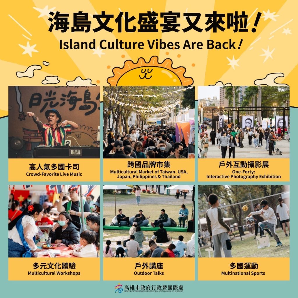 Chang Yen-Ching, Director-General of the Department of Administrative and International Affairs, told the media that last year’s Sunshine Island Vibe Fest attracted over 140,000 participants. City officials said this year’s festival has been upgraded—from the music lineup and Island Outdoor Talks to multicultural activities and sports.