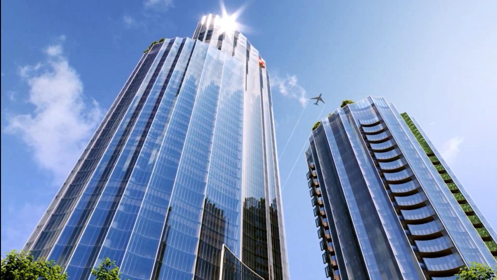 - 32-story residential building, approximately 130 meters in height, designed as employee housing. Planned facilities include an infinity pool and a rooftop garden.