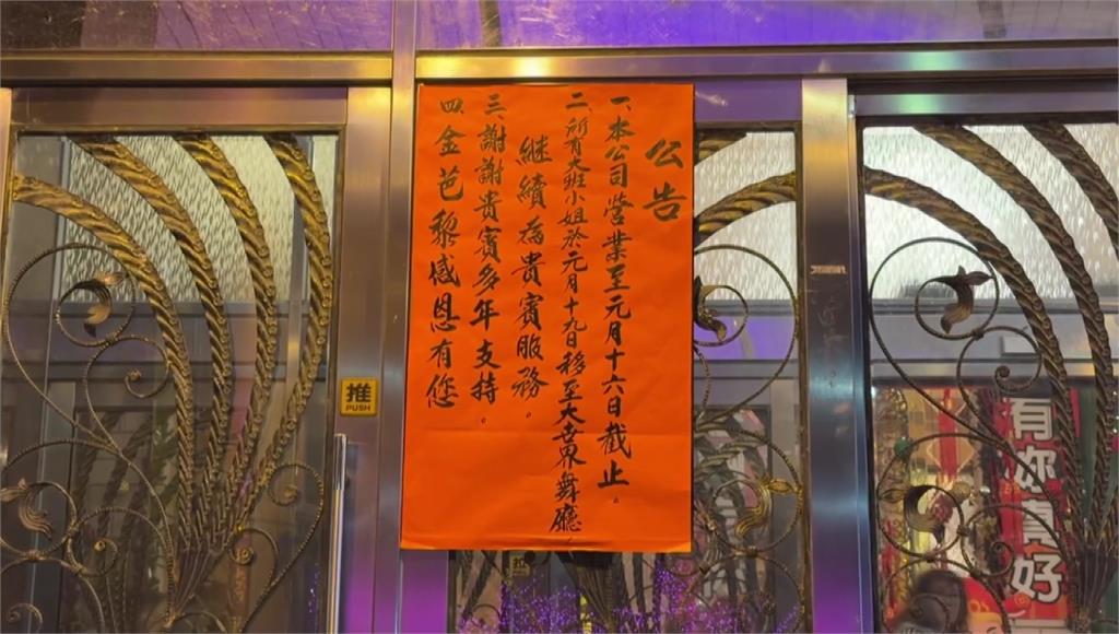 According to TTV and Yahoo, a notice posted at the entrance said staff and performers would relocate beginning January 19 to Da World Dance Hall (大世界舞廳).