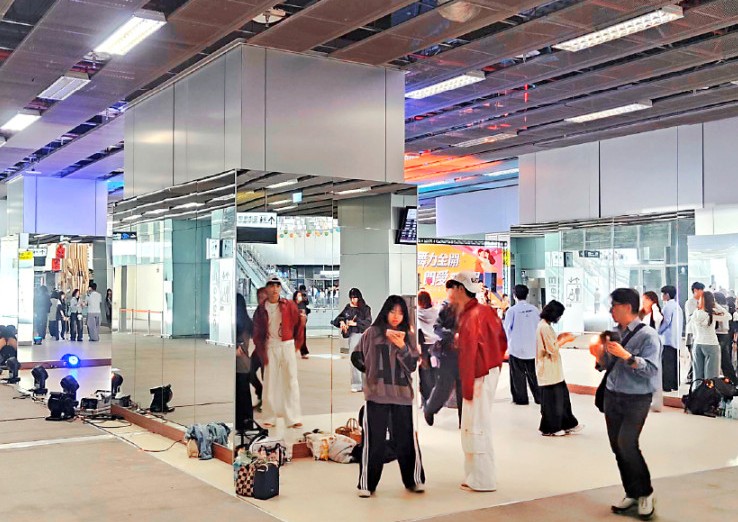 KAOHSIUNG — Large mirror walls have been installed at Kaohsiung Station (高雄車站), creating a new public space where young people can practice street dance in the heart of the city.