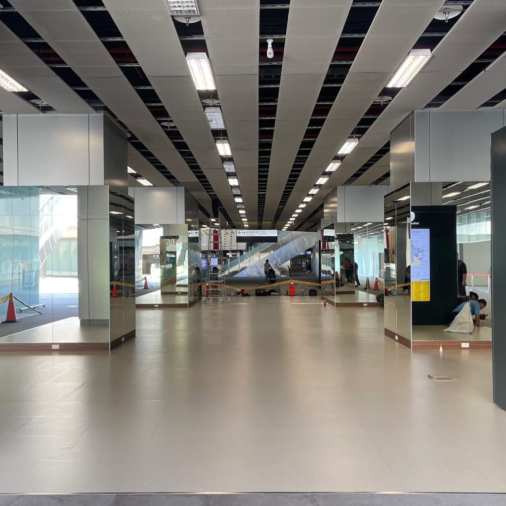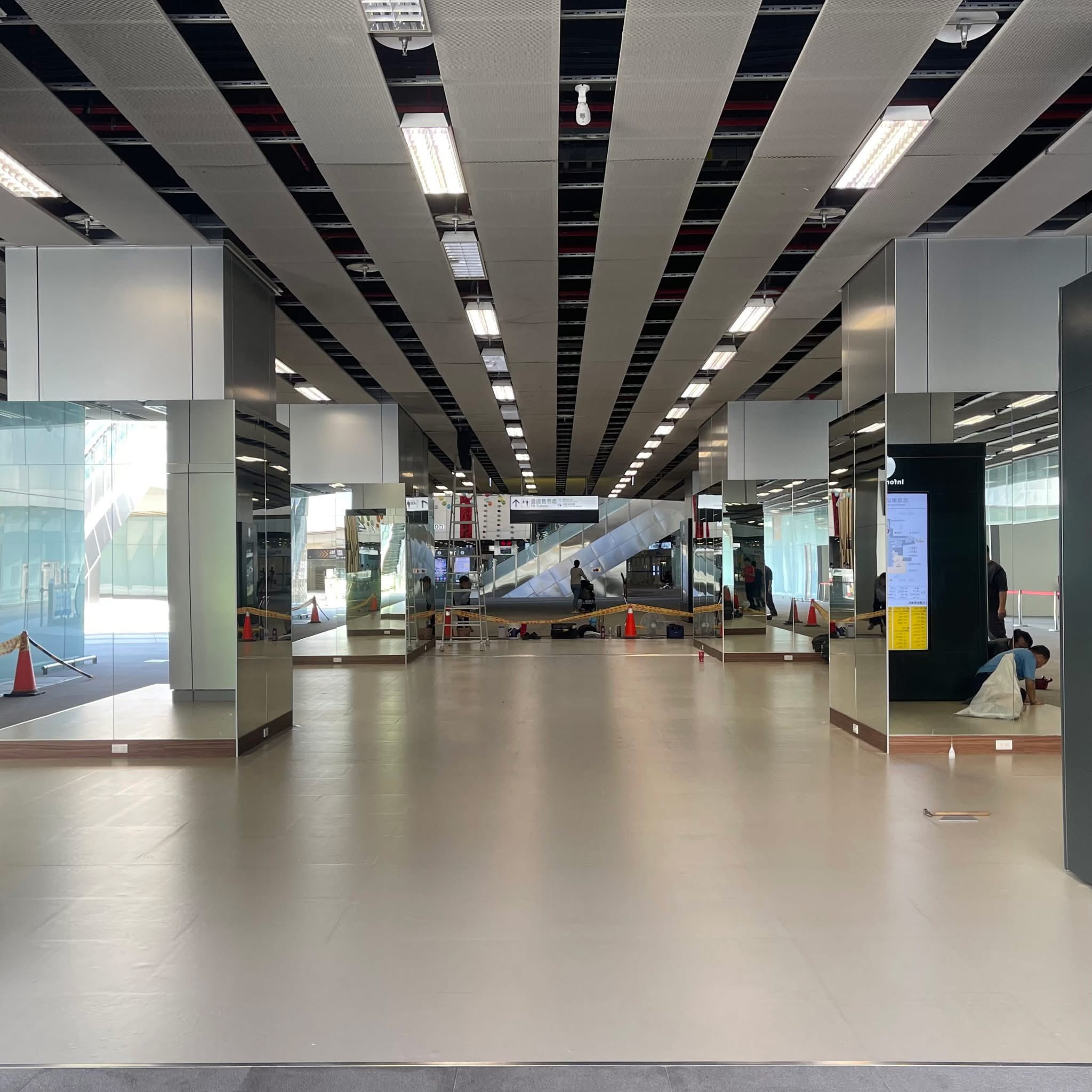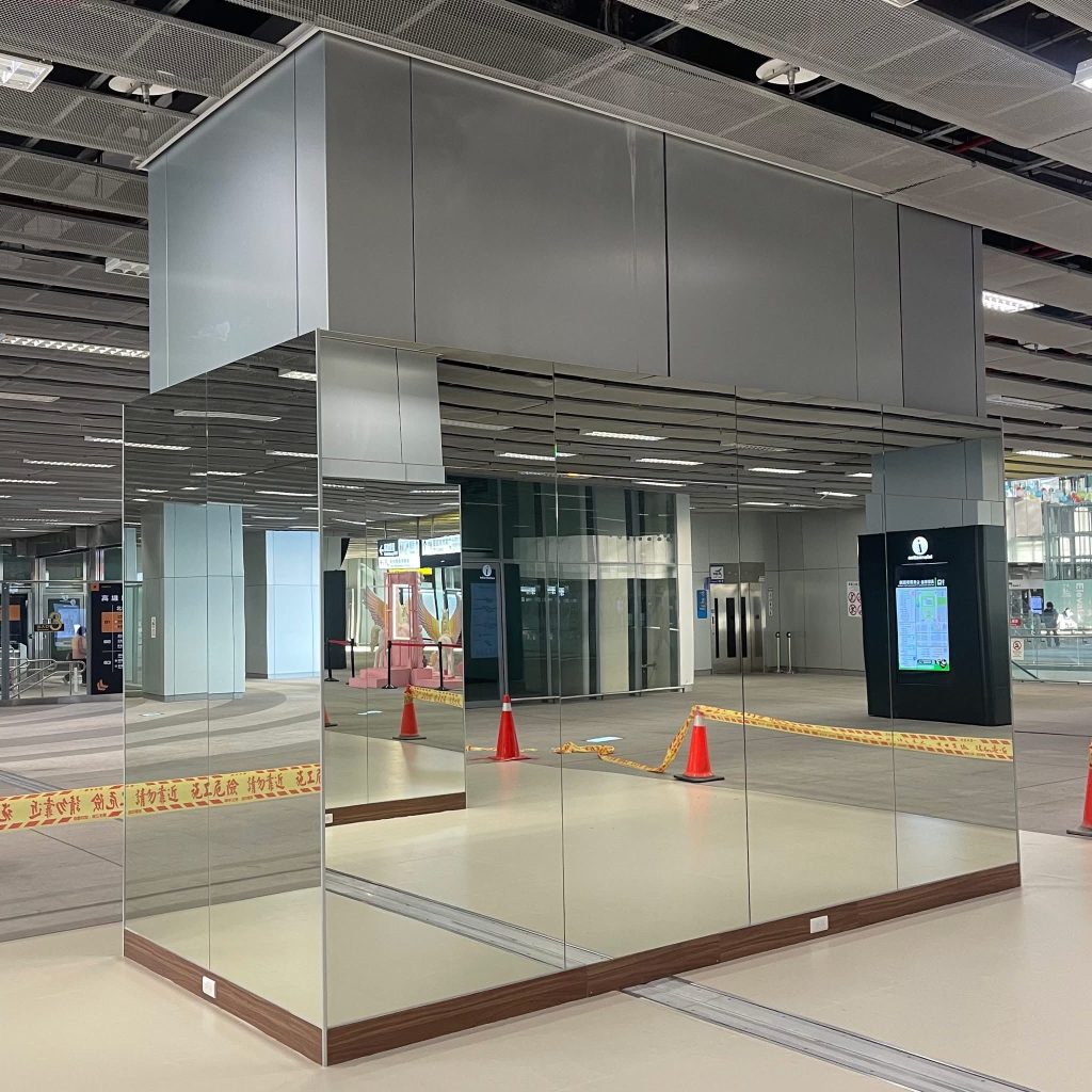 The mirrors are located on the north side of the station’s sunken plaza, part of an area now branded “Xin Gaocheng” (新高埕) by the operator Global Mall (環球購物中心), which leases the space from Taiwan Railway Corp. (台鐵公司).
