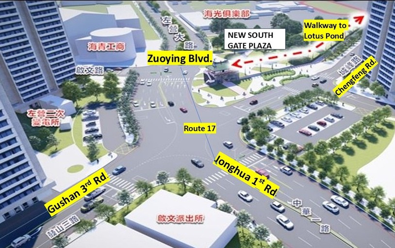 KAOHSIUNG — Kaohsiung’s Transportation Bureau says the Zuoying South Gate roundabout is not being torn down but converted into a four-way intersection as part of the New Provincial Highway 17 project.