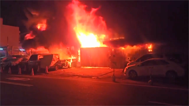TAINAN — A major fire broke out Wednesday evening at an unmarked pawned-vehicle storage yard on Pei’an Road (培安路) in Tainan’s Annan District (安南區), destroying more than 160 cars and over 200 motorcycles, according to the Tainan City Fire Bureau.