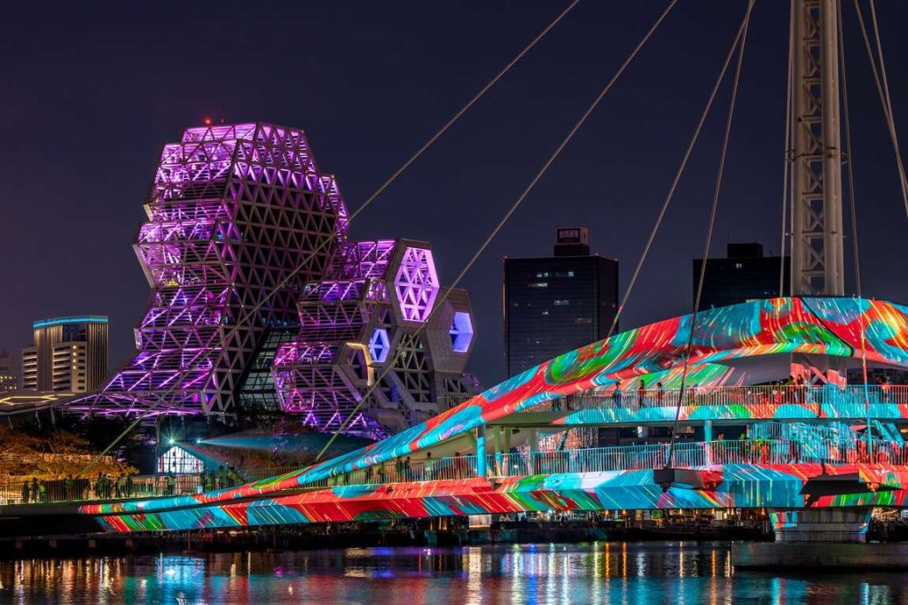 Today the district includes three major warehouse clusters — Dayong (大勇倉庫群), Penglai (蓬萊倉庫群), and Dayi (大義倉庫群) — hosting exhibitions, design studios, music performances, and festivals. Nearby landmarks such as Great Harbor Bridge and KW2 Warehouse No.2 further strengthen the area’s appeal, along with easy access via MRT and the Kaohsiung Light Rail.