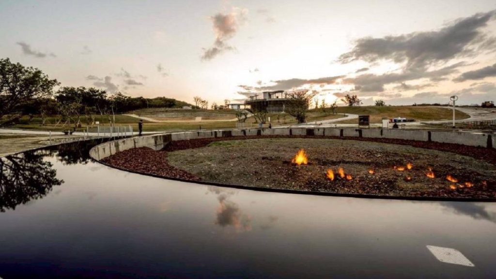 According to the county government, the new park covers approximately 2.9 hectares and is designed to protect and explain the long-observed “fire” phenomenon, in which combustible gas escapes through fissures in the earth and ignites at the surface. The site has been redesigned to combine geological preservation with public access, education, and tourism.