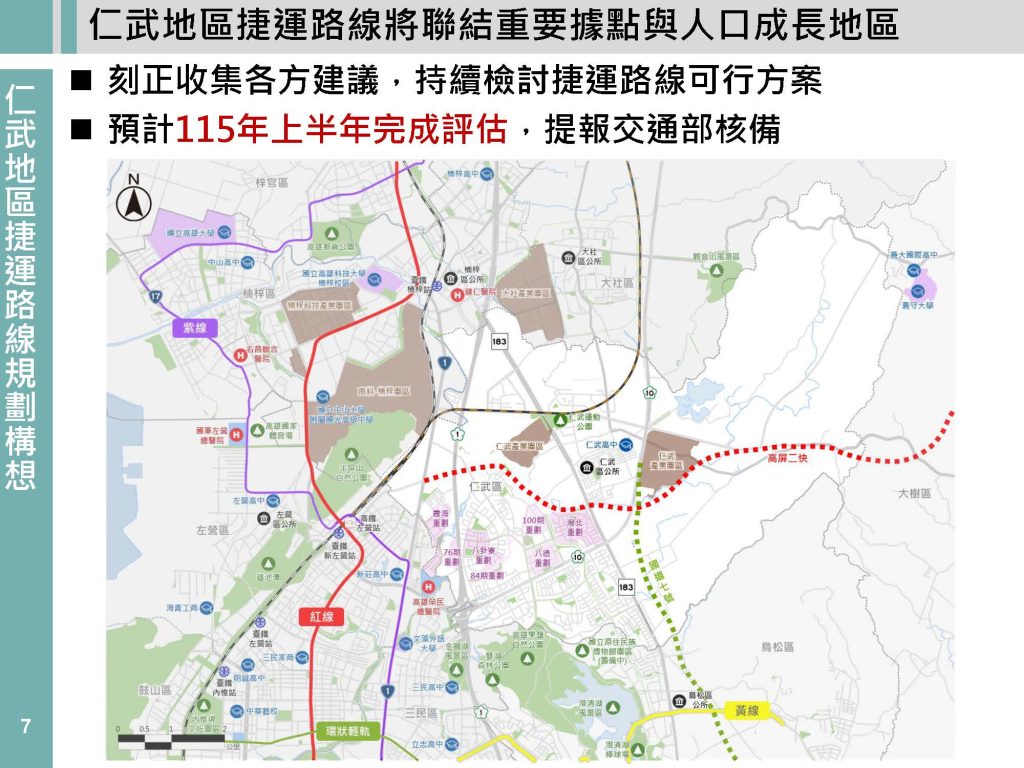 KAOHSIUNG — Kaohsiung City officials say a proposed new metro line serving Renwu District (仁武區) is moving into a critical planning stage, with the city aiming to submit an updated rail network proposal to the central government by June.