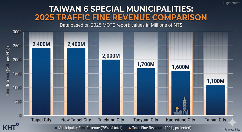The 2025 fiscal data for Taiwan’s six special municipalities showed significant fine revenues: