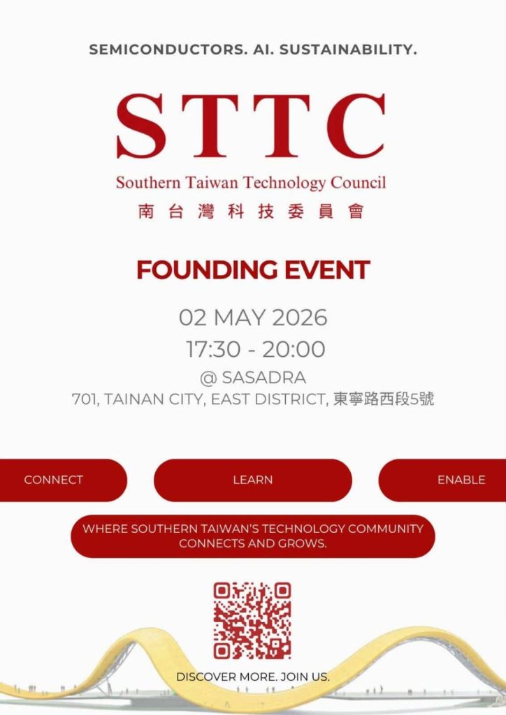 “Connect, Learn, Enable,” reads the invite for the founding of the Southern Taiwan Technology Council (STTC). If you’re a “techie” in South Taiwan and semiconductors, scan the QR code and sign up.