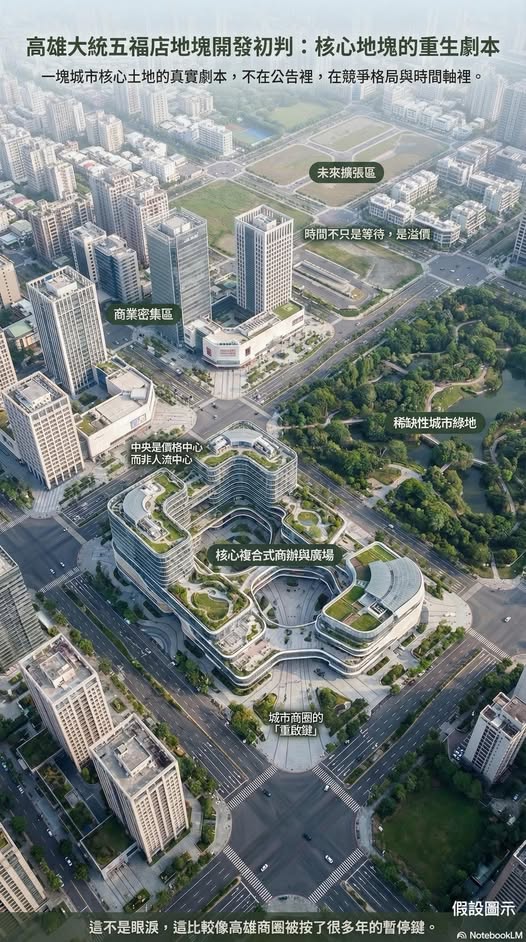 KAOHSIUNG — The former Datong Wufu (大統五福店) site near Central Park (中央公園) has entered what analysts describe as a “strategic holding” phase, with landowners focusing on integration and positioning rather than immediate redevelopment, according to a widely circulated market analysis.