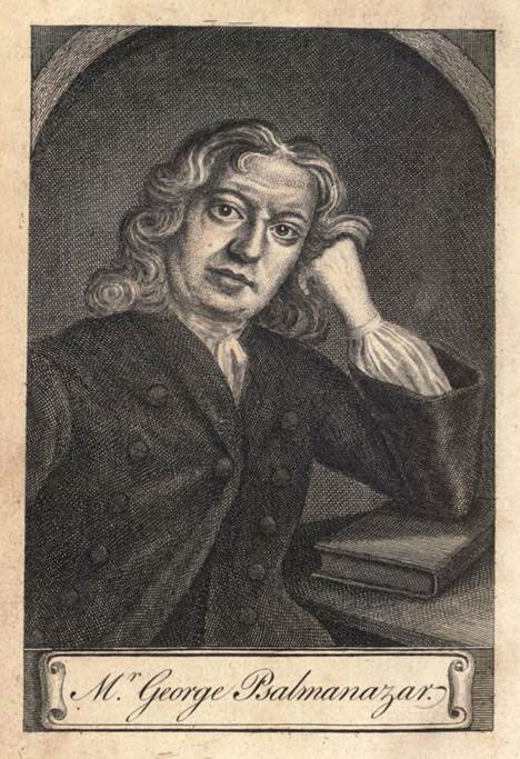 Although Psalmanazar wrote Memoirs of ****: Commonly Known as George Psalmanazar: A Reputed Native of Formosa (1764), a confessional memoir published a year after his death at the age of about eighty-four, he was a close-mouthed man, and many of the details of his life remain a mystery. We do not know his real name (his fake one, Psalmanazar, was inspired by an Assyrian king “Shalmaneser” in the Bible). Psalmanazar was born about 1679 and is believed to have come from southern France. According to his memoir, he attended a Jesuit school, but finding theology too dull, dropped out; a little later, he took to the road in the guise of a pilgrim, first as an Irishman and then as a Japanese converted to Christianity. Discovering that soliciting alms was easier the more exotic his disguise, he decided to pass himself off as a Japanese heathen. He made a little “bible” filled with figures of the sun, moon, and stars, and verses in a language of his own invention that he would chant to the rising and setting sun.