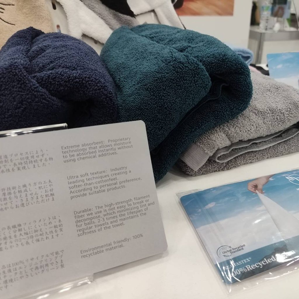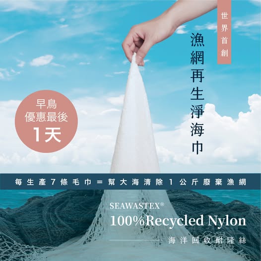 According to Sun Jen Textile, manufacturing seven towels removes one kilogram of abandoned fishing nets from Taiwan’s surrounding waters.