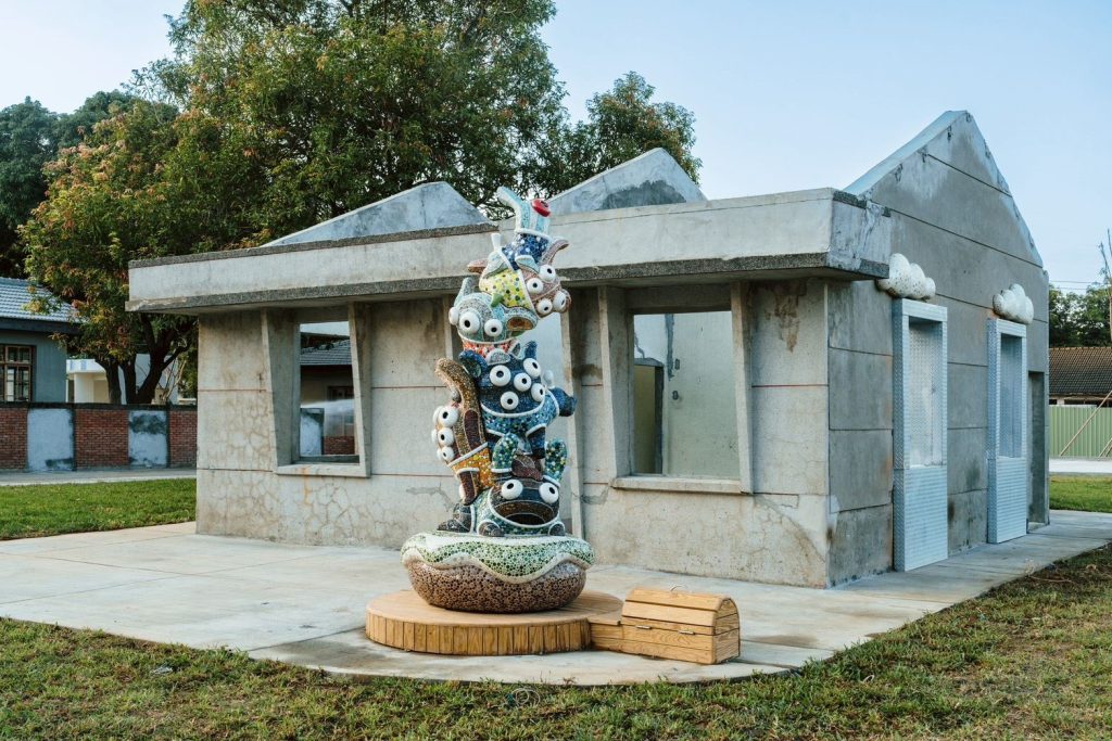 Several public art and landscape installations have been incorporated to reference local memory and the everyday life of the old settlements. These include “Environment Trace (環‧跡),” which recreates the former roundabout’s curvature in a sloped grass landscape, “Memory Garden,” a spot using native plants and low-carbon materials to form an ecological courtyard, and the “Sweetheart Project (甜心計畫)” with installations of small whimsical sculptures inspired by pets, toys, and home life—symbols often associated with close-knit military village communities.